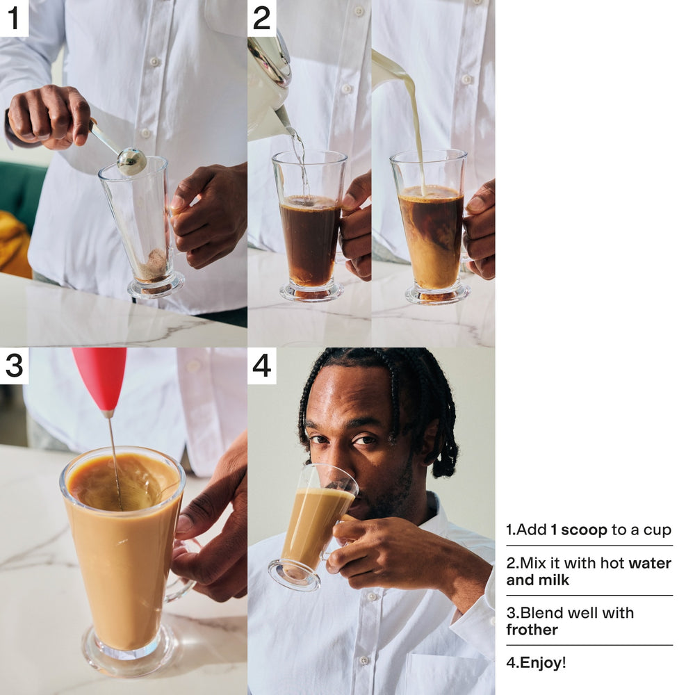 Want an extra boost? You can enjoy up to 3 servings per day to replace your usual coffee or pick-me-up drink. Experiment to find what works best for you, whether it’s with water, milk, coffee, tea, or anything else that suits your taste.