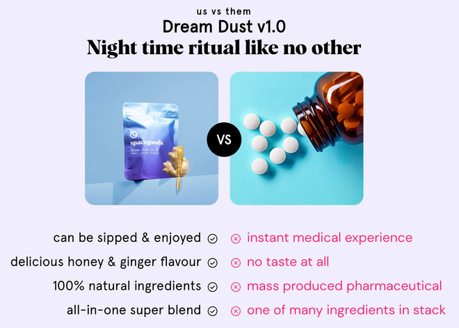 Dream Dust is a 'for us, by us' product, meaning we've designed and developed it for ourselves first, knowing that people just like us (entrepreneurs, creatives & dreamers of all kinds) will love it too! The whole idea of 'Dream Dust' centres around longevity and sustainability, meaning you can take it every night and never feel like you need a break - without experiencing any negative side effects or dependancy. In summary, you will feel calm, relaxed & ready to sleep (both mentally & physically) - the perfect pre-bed ritual!