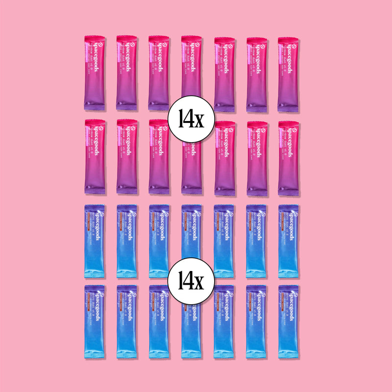 Raw Chocolate (Rainbow) + Chai (Astro) / 2 weeks (14x singles each)