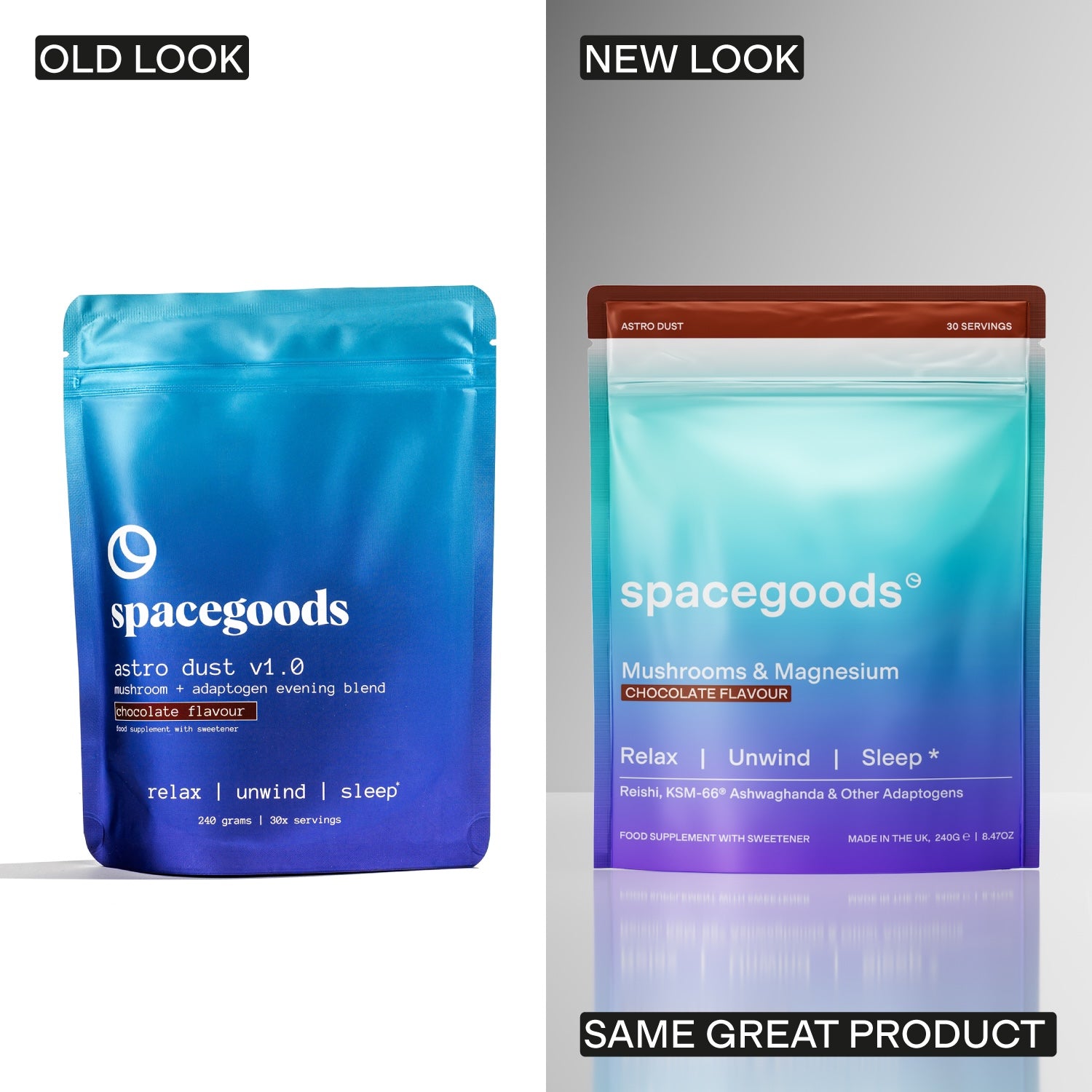 Astro Dust comes in two delicious flavours - Chocolate or Chai.