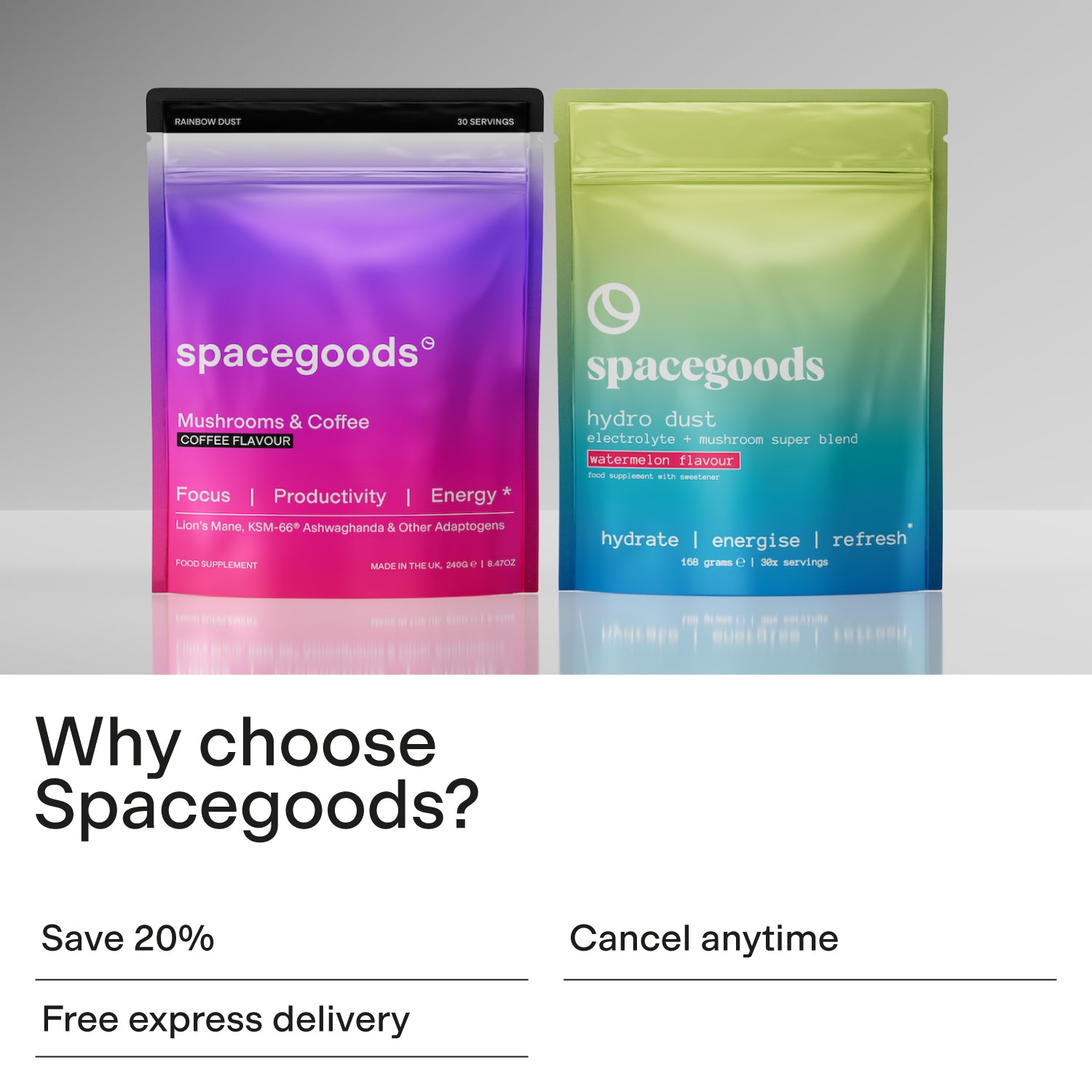 We offer both one-time purchases and flexible subscriptions, so you can choose what works best for you. You can manage your subscription preferences anytime here. Want to add Hydro Dust to your existing subscription? Just use the link above or reach out to our team at support@spacegoods.com - we’re happy to help!