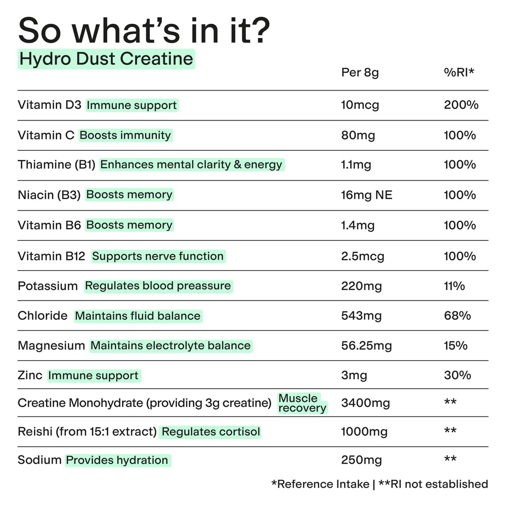 Ingredients: Hydro Dust is packed full of functional ingredients, here are some more details