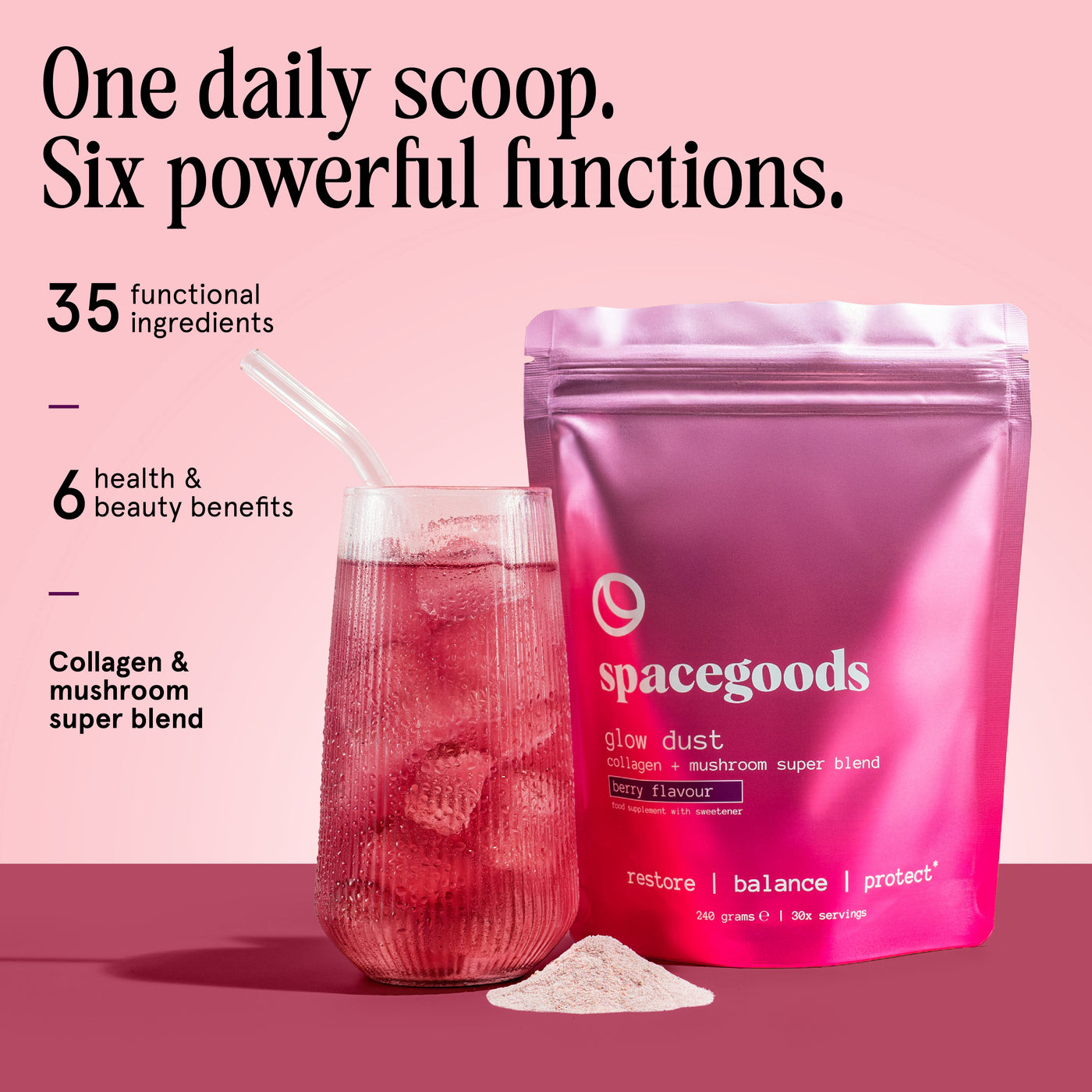 Glow Dust blends scientifically-backed ingredients to deliver energy, immunity, gut health, skin, hormones and anti-aging support - in one delicious scoop.