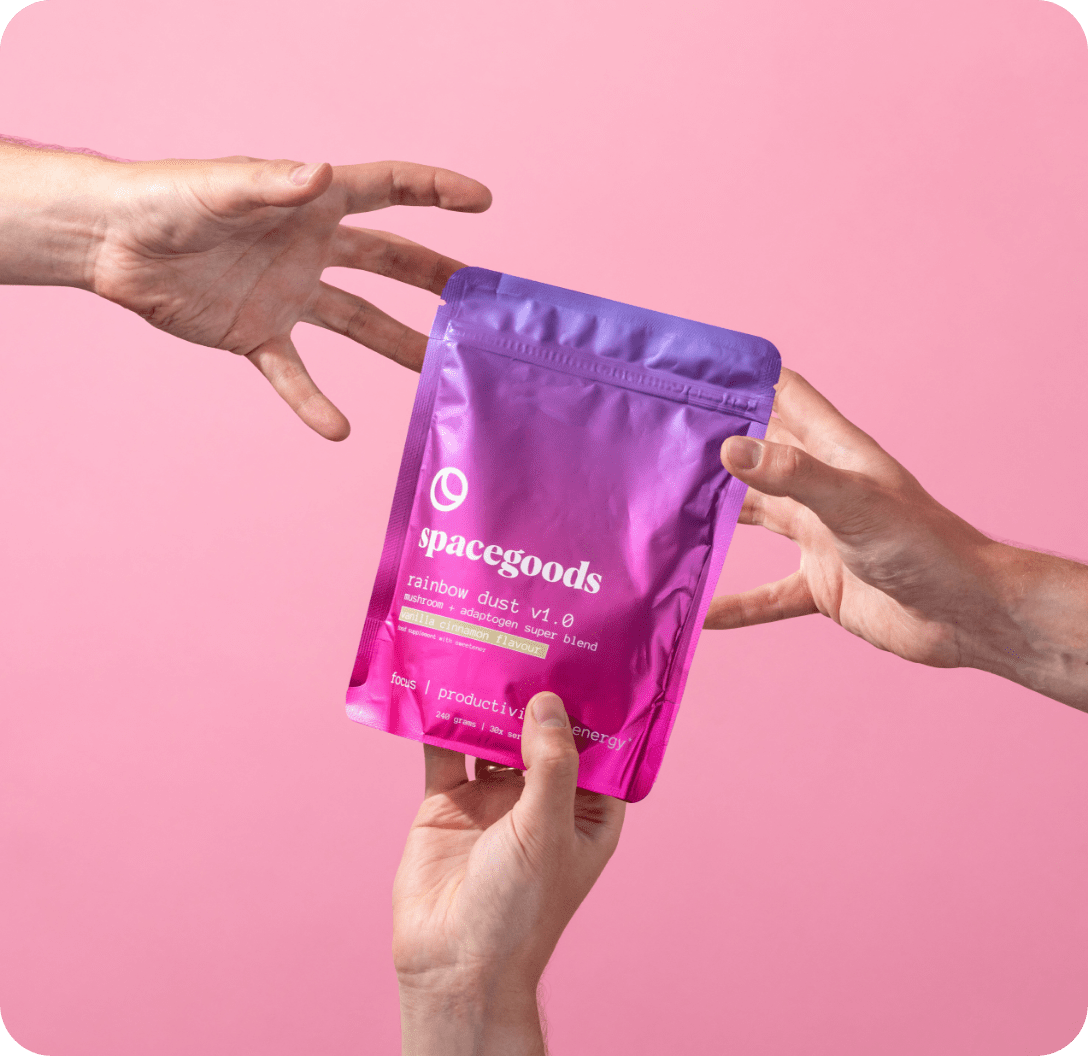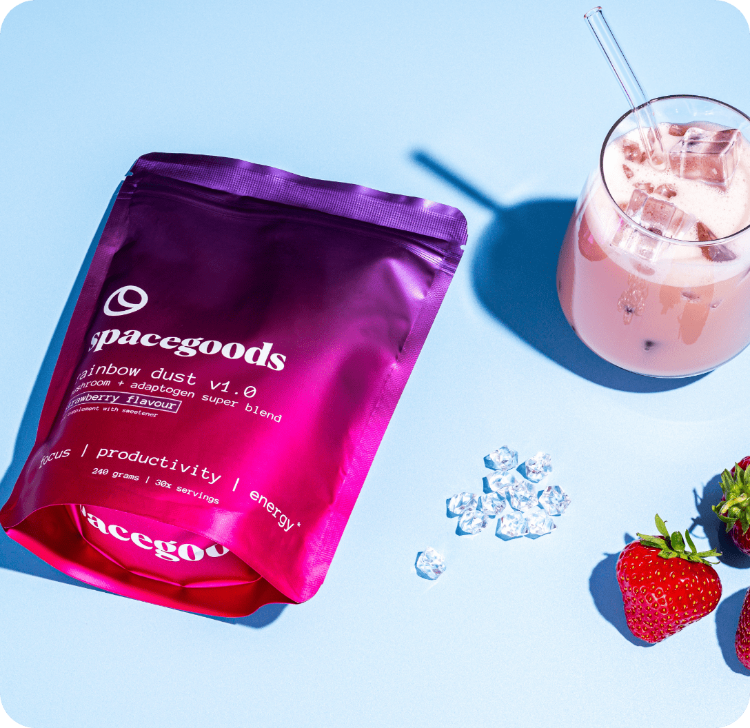 Rainbow Dust delivers the same energising effect as coffee but without the shaky side effects. You get smooth, steady energy that lasts all day without the rollercoaster ride thanks to natural caffeine balanced with calming ingredients like Lion’s Mane Mushroom and Ashwagandha.