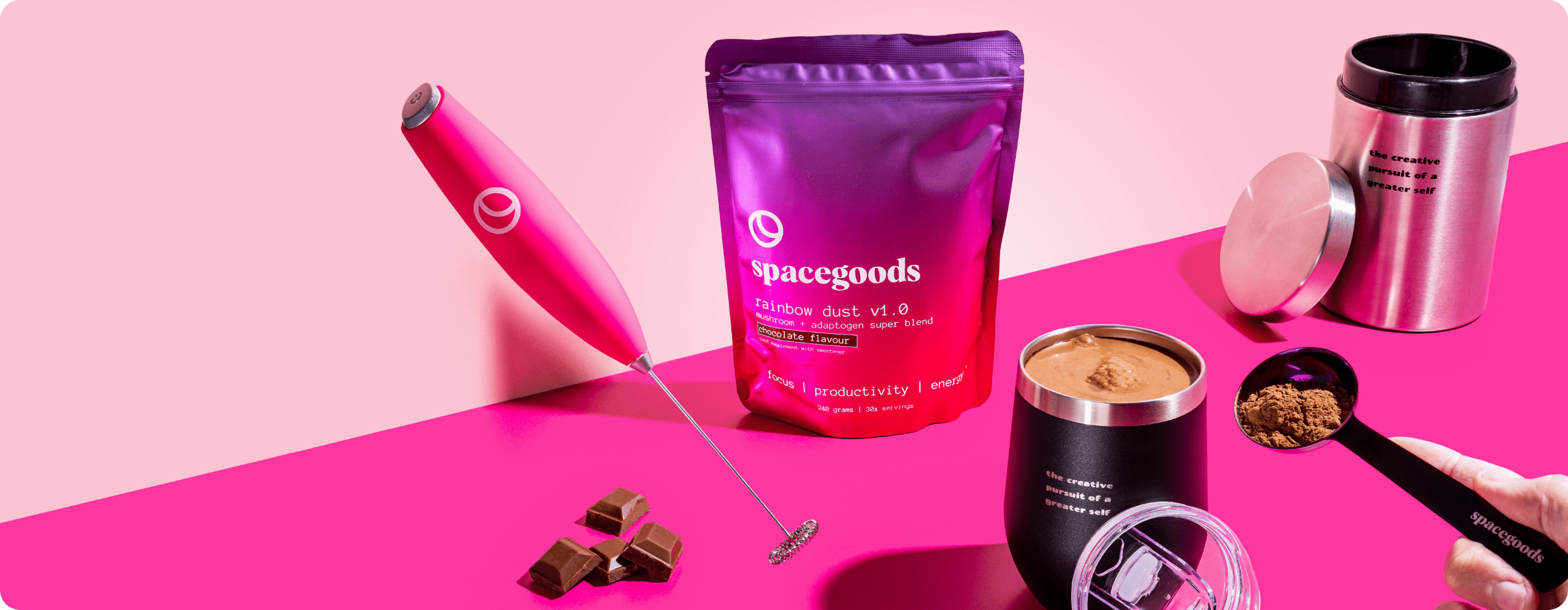 Spacegoods provides all the necessary tools to make this a reality. Simply scoop, mix, drink, and enjoy – all at a lower price, with more productivity, without jitters or crashes, and no calories needed.