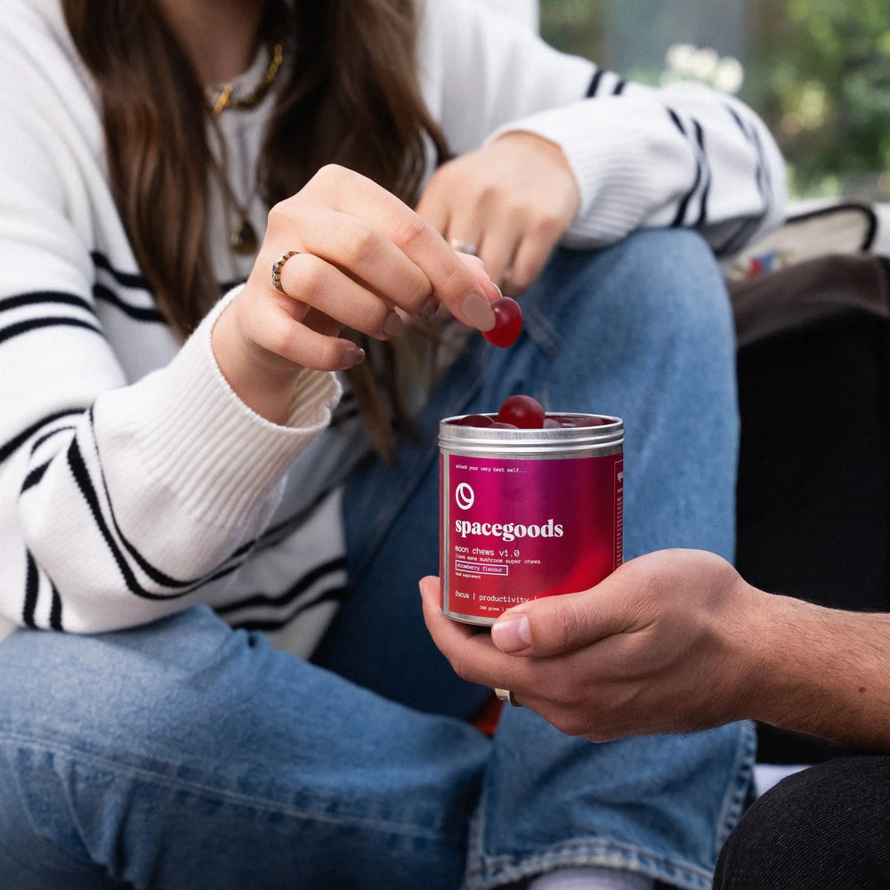 on-the-go mushroom topup designed to taste great, feel great and make you do great.