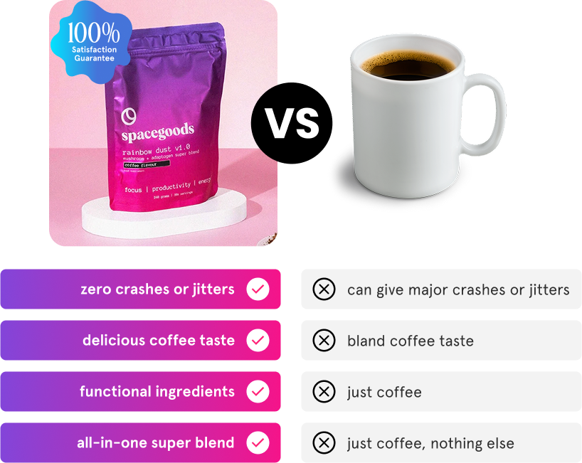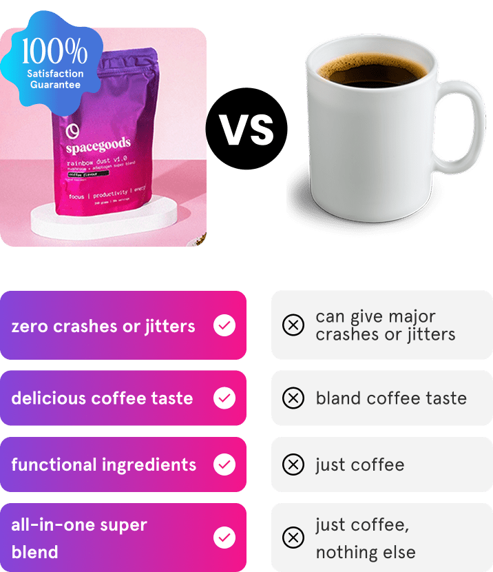 Rainbow Dust combines the coffee you love with functional mushrooms & adaptogens to promote focus, energy and calm. Great taste, without the jitters, anxiety or crash.